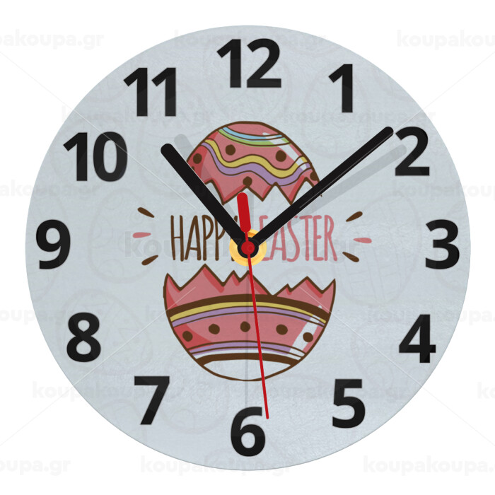 Happy easter egg, Ρολόι τοίχου γυάλινο (20cm)