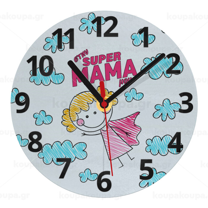 Στην SUPER μαμά μου, comic, Ρολόι τοίχου γυάλινο (20cm)