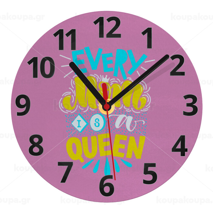 Every mom is a Queen, Ρολόι τοίχου γυάλινο (20cm)