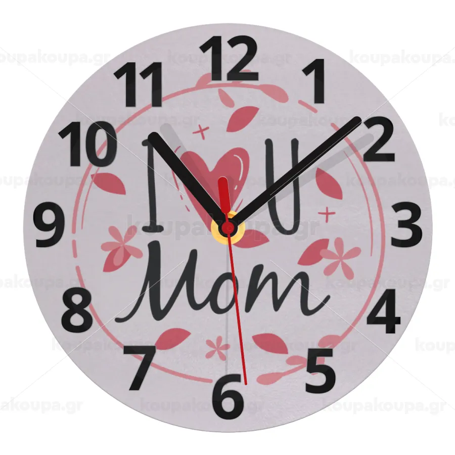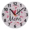 I Love you Mom pink, Ρολόι τοίχου γυάλινο (20cm)