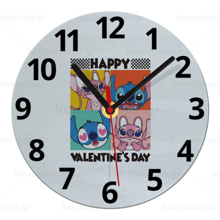 Lilo & Stitch Happy valentines day, Ρολόι τοίχου γυάλινο (20cm)