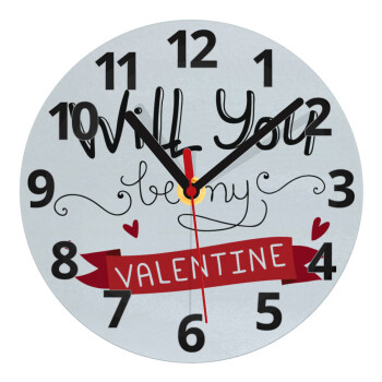 Will you be my Valentine???, Ρολόι τοίχου γυάλινο (20cm)