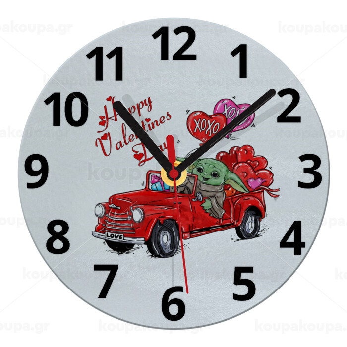 Yoda, happy valentines day (xoxo), Ρολόι τοίχου γυάλινο (20cm)