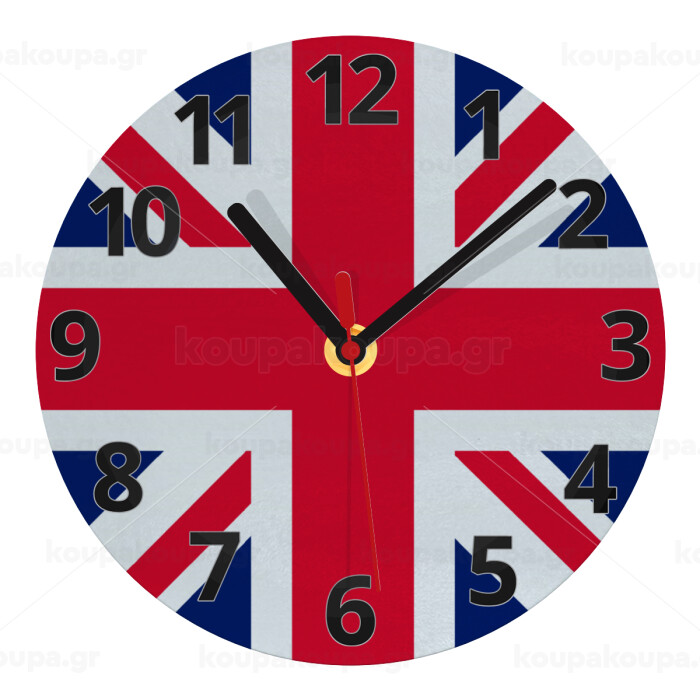 England flag, Ρολόι τοίχου γυάλινο (20cm)