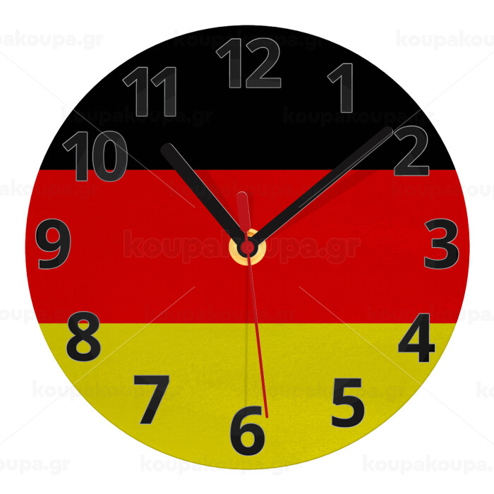 Germany flag, Ρολόι τοίχου γυάλινο (20cm)