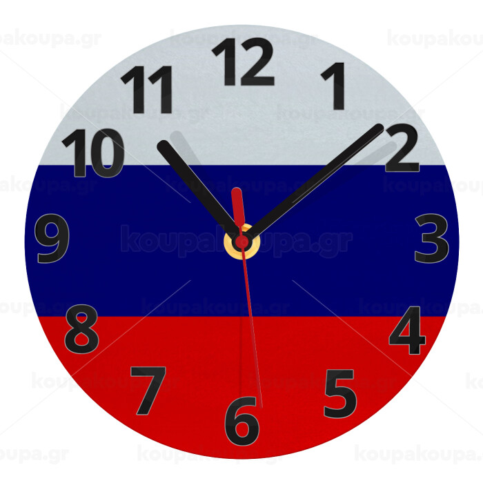 Russia flag, Ρολόι τοίχου γυάλινο (20cm)