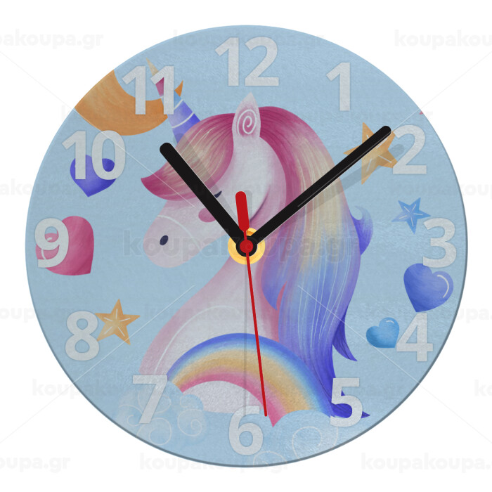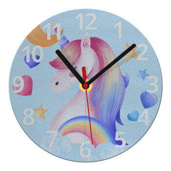 Cute unicorn, Ρολόι τοίχου γυάλινο (20cm)
