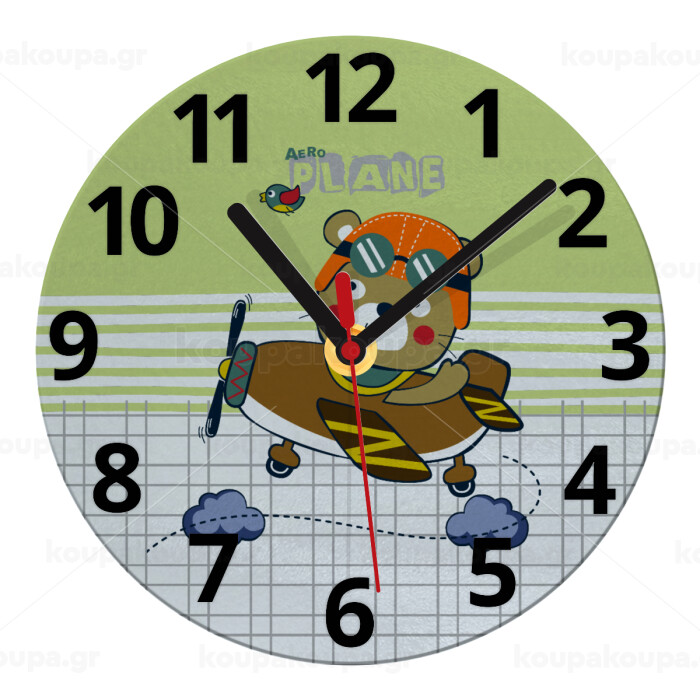 Kids Plane, Ρολόι τοίχου γυάλινο (20cm)