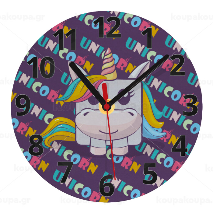 Unicorns cube, Ρολόι τοίχου γυάλινο (20cm)