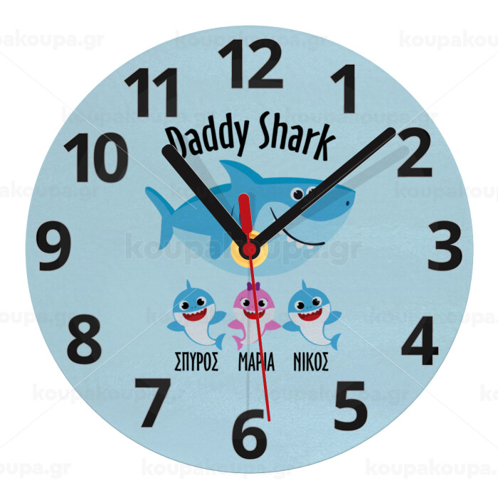 Daddy Shark (με ονόματα παιδικά), Ρολόι τοίχου γυάλινο (20cm)