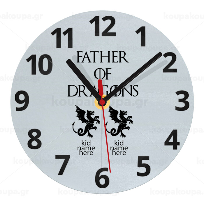 GOT, Father of Dragons (με ονόματα παιδικά), Ρολόι τοίχου γυάλινο (20cm)