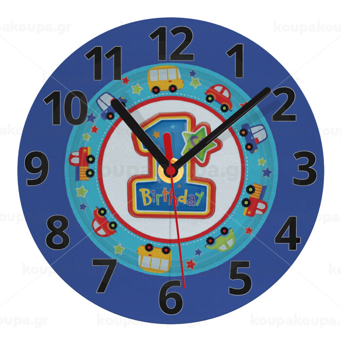 Happy 1st Birthday, Ρολόι τοίχου γυάλινο (20cm)
