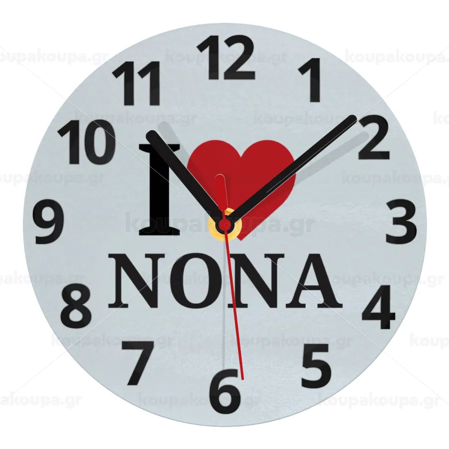 I Love ΝΟΝΑ, Ρολόι τοίχου γυάλινο (20cm)