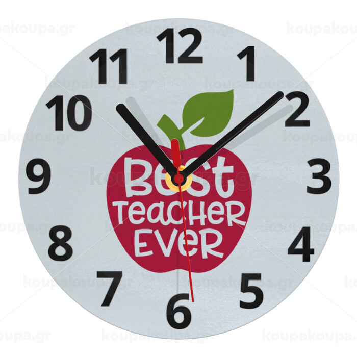 best teacher ever, apple!, Ρολόι τοίχου γυάλινο (20cm)
