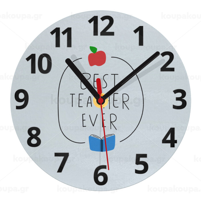 Best teacher ever, Ρολόι τοίχου γυάλινο (20cm)