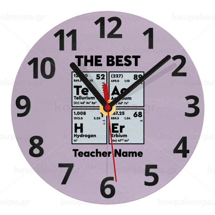 THE BEST Teacher chemical symbols, Ρολόι τοίχου γυάλινο (20cm)