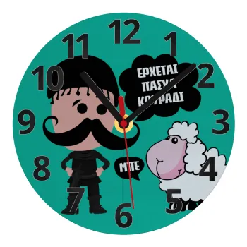 Κρητικός "Έρχεται Πάσχα κουράδι", Ρολόι τοίχου γυάλινο (20cm)