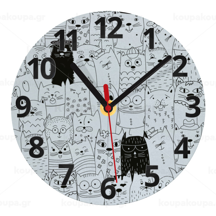 Γάτες γραμμικό σχέδιο, Ρολόι τοίχου γυάλινο (20cm)