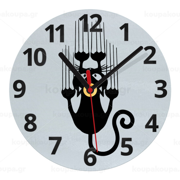 Cat scratching, Ρολόι τοίχου γυάλινο (20cm)