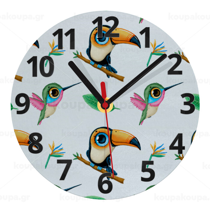 Toucan, Ρολόι τοίχου γυάλινο (20cm)