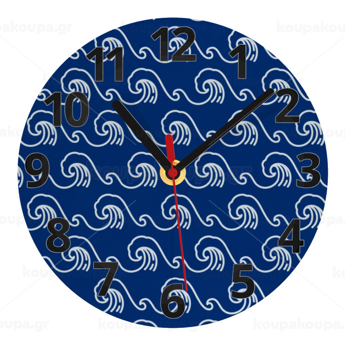 Blue Waves, Ρολόι τοίχου γυάλινο (20cm)