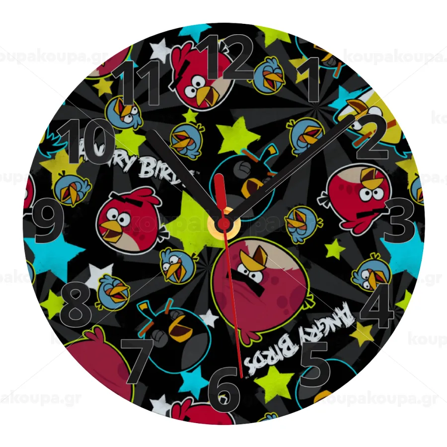 Τα πουλάκια angry birds μαύρο, Ρολόι τοίχου γυάλινο (20cm)