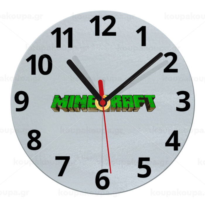 Minecraft logo green, Ρολόι τοίχου γυάλινο (20cm)