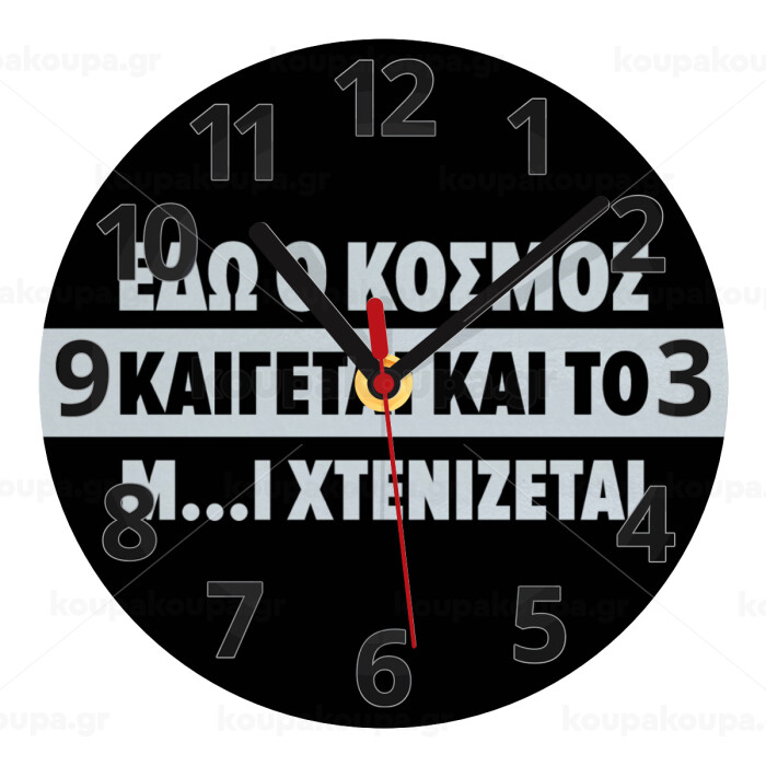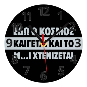 Εδώ ο κόσμος καίγεται και το Μ....Ι χτενίζεται, Ρολόι τοίχου γυάλινο (20cm)