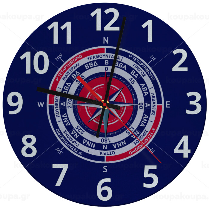 Wind compass, Ρολόι τοίχου γυάλινο (30cm)