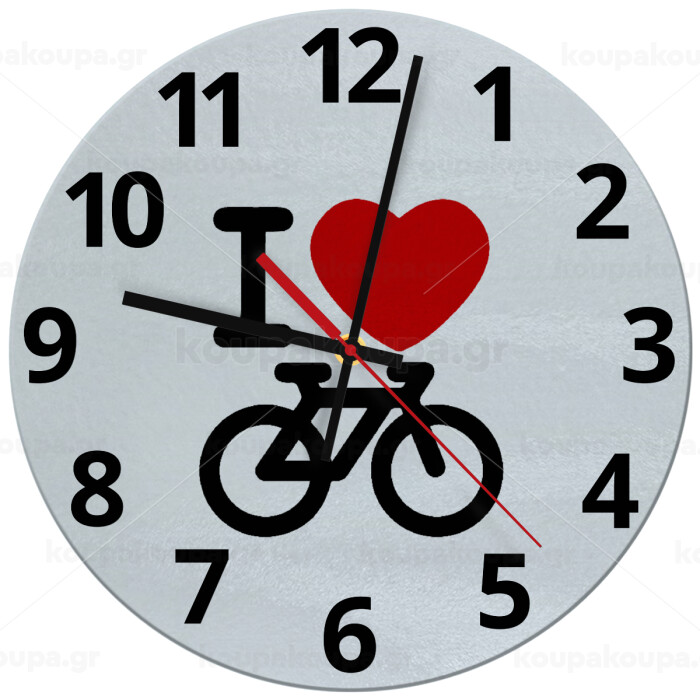 I love Bike, Ρολόι τοίχου γυάλινο (30cm)