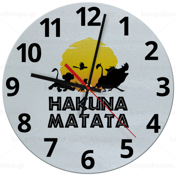 Hakuna Matata, Ρολόι τοίχου γυάλινο (30cm)