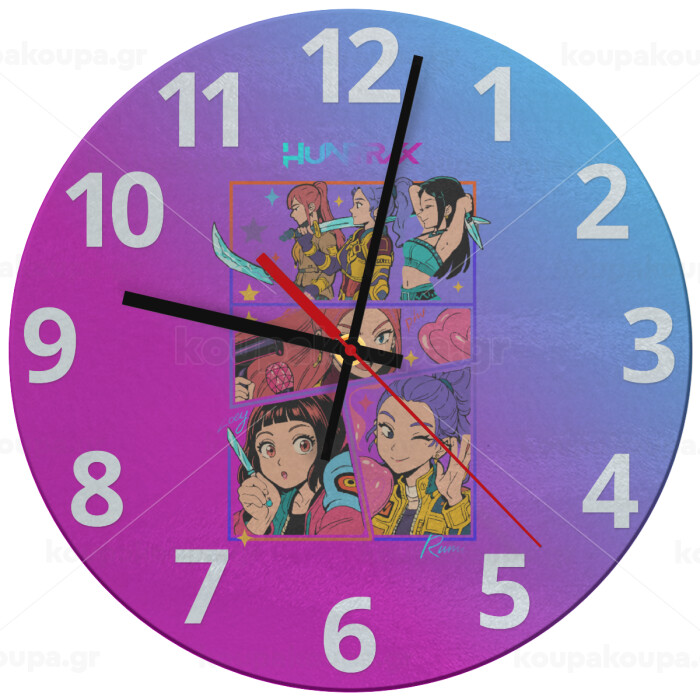 Huntrix Kpop Girls, Ρολόι τοίχου γυάλινο (30cm)