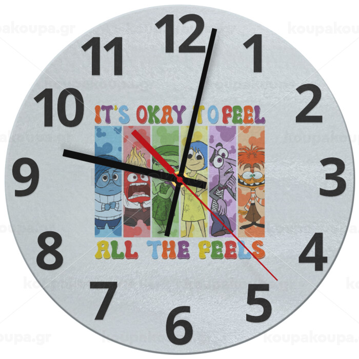 Inside Out It's Okay To Feel All The Feels , Ρολόι τοίχου γυάλινο (30cm)