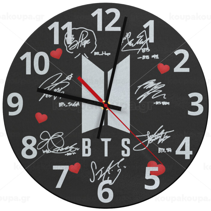 BTS signs, Ρολόι τοίχου γυάλινο (30cm)
