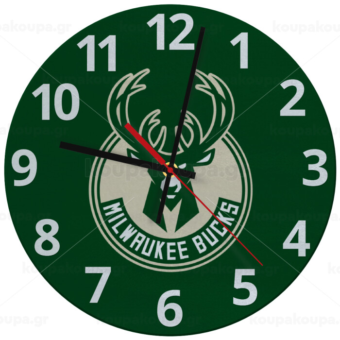 Milwaukee bucks, Ρολόι τοίχου γυάλινο (30cm)
