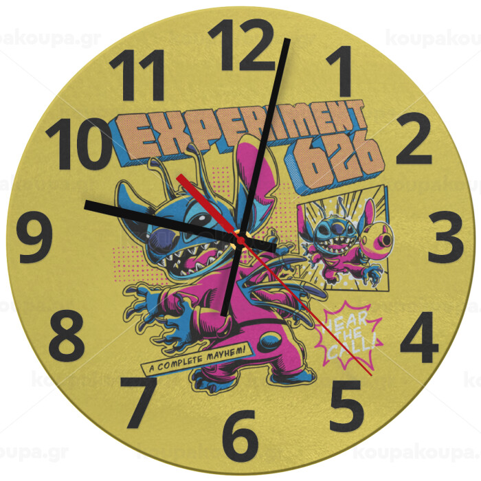 Stitch Experiment 626, Ρολόι τοίχου γυάλινο (30cm)
