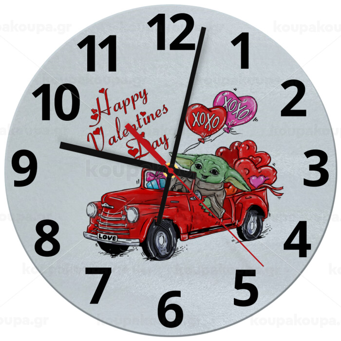 Yoda, happy valentines day (xoxo), Ρολόι τοίχου γυάλινο (30cm)
