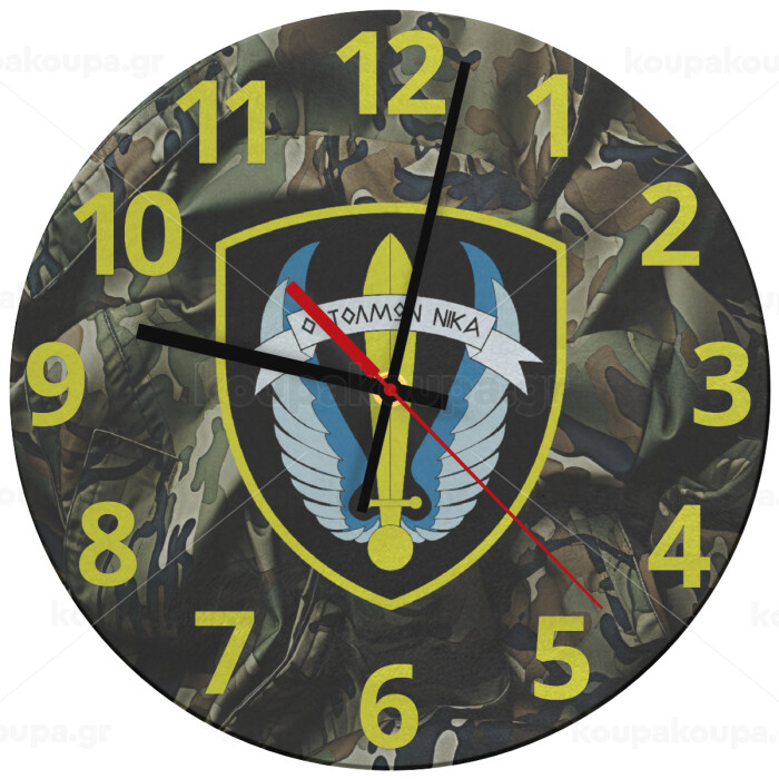 Έμβλημα Μονάδων Καταδρομών Ο Τολμων Νικα - Λοκ, Ρολόι τοίχου γυάλινο (30cm)
