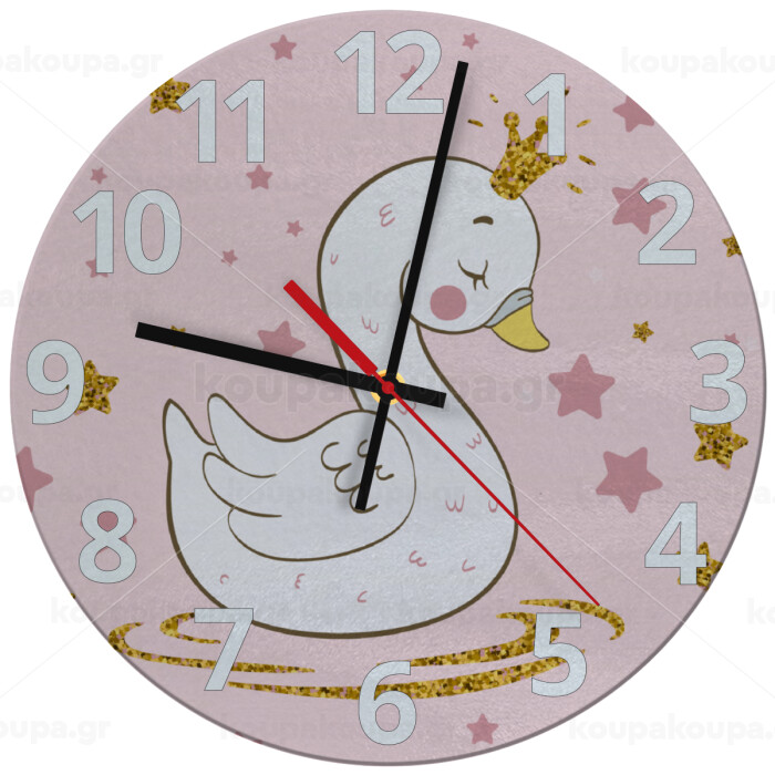 Crowned swan, Ρολόι τοίχου γυάλινο (30cm)