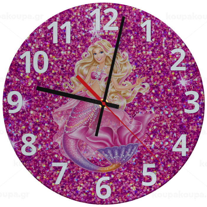 Barbie mermaid , Ρολόι τοίχου γυάλινο (30cm)