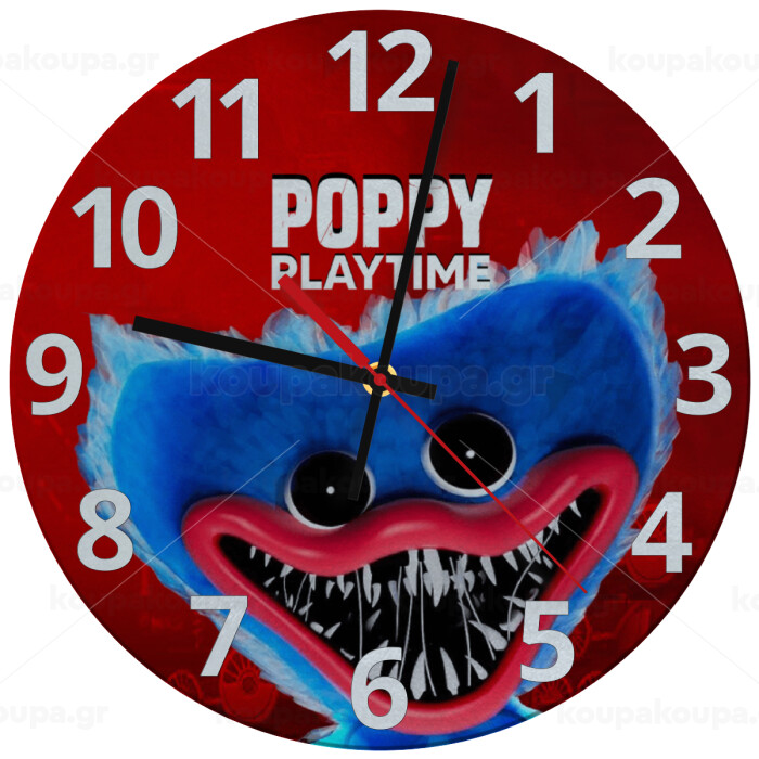Poppy Playtime Huggy wuggy, Ρολόι τοίχου γυάλινο (30cm)