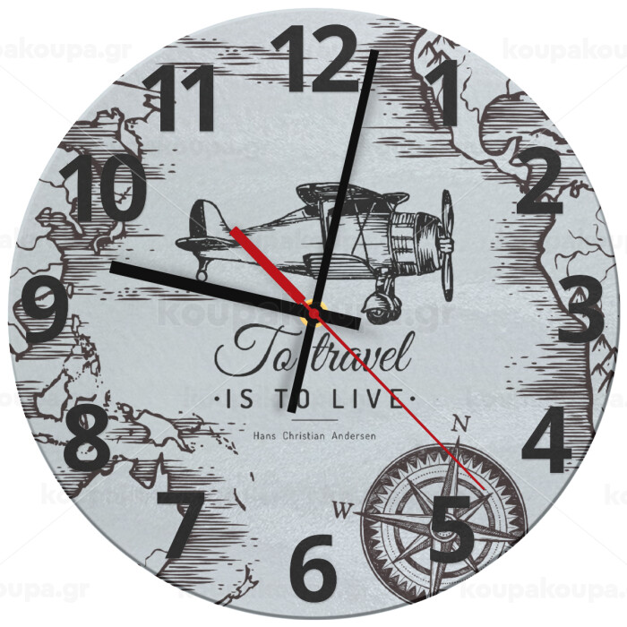 To travel is to live, Ρολόι τοίχου γυάλινο (30cm)