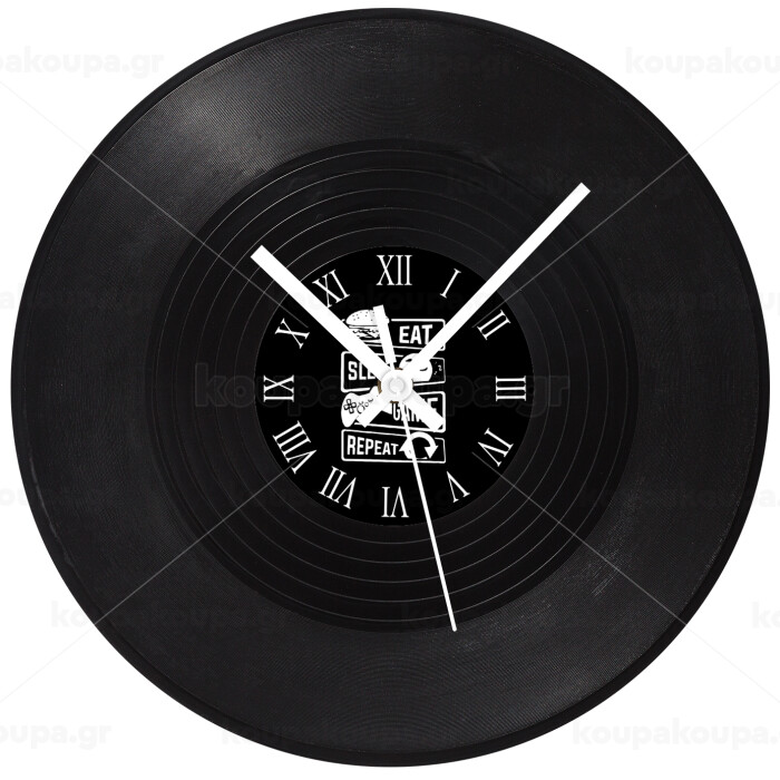 Eat Sleep Game Repeat, Ρολόι τοίχου Βινύλιο (30cm)