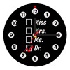 Miss, Mrs, Ms, DR, Wooden wall clock (20cm)
