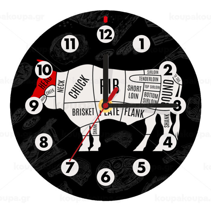 Diagrams for butcher shop, Wooden wall clock (20cm)