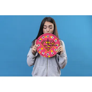 Superman Pink, Wooden wall clock (20cm)