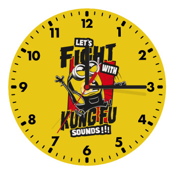 Minions Let's fight with kung fu sounds, Wooden wall clock (20cm)