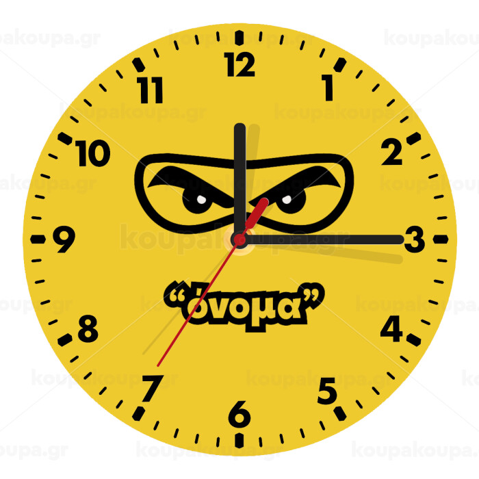 Ninja Eyes με όνομα, Wooden wall clock (20cm)