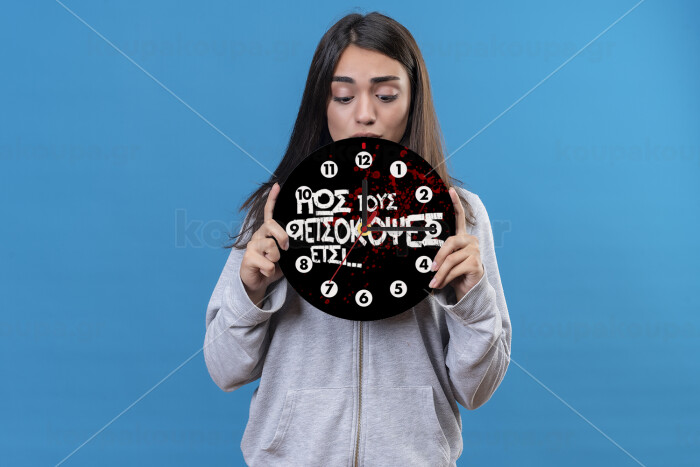 Πως τους πετσόκοψες έτσι..., Wooden wall clock (20cm)
