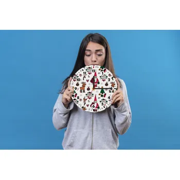 Santas, Deers & Trees, Wooden wall clock (20cm)